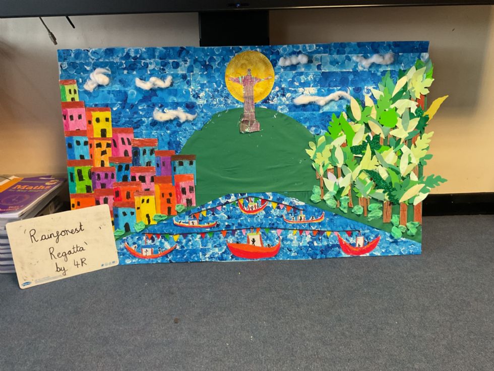 They had take one picture day. We looked at the artist Canaletto and created our own rainforest regatta based on his painting.