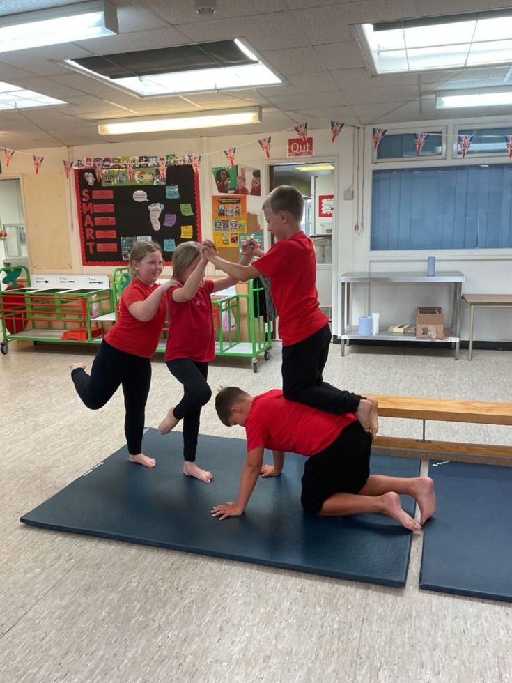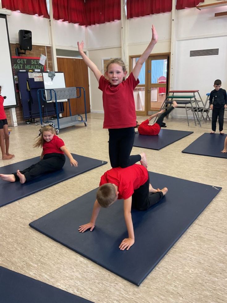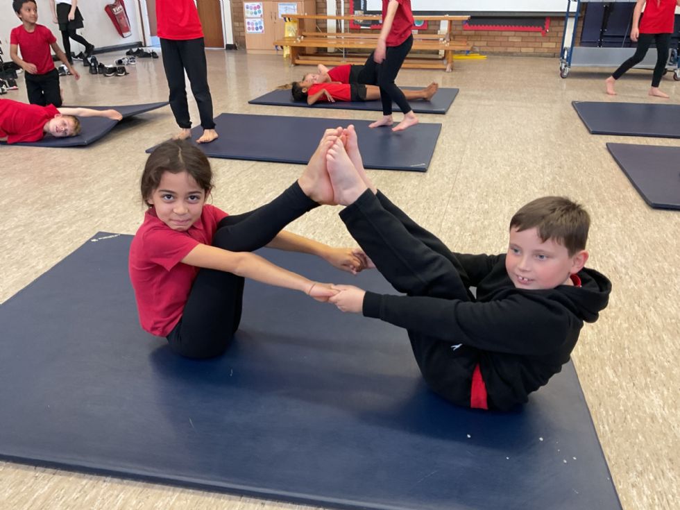 They have been taking part in gymnastics lessons, learning three different types of rolls (straddle, forward and barrel). They put a small sequence together with their partners to perform to the class.