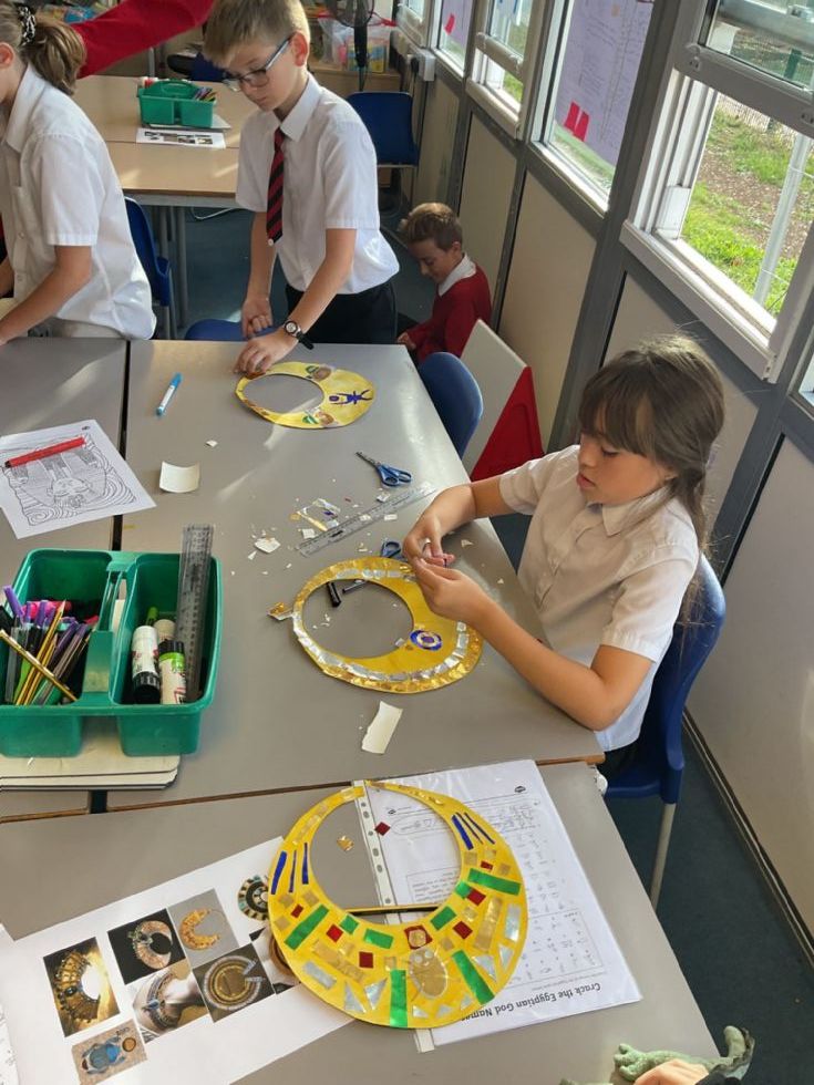 Our topic has been Ancient Egypt. We have been learning about their beliefs, the Gods and mummification. We recreated an ancient tomb in our classroom and completed a descriptive piece of writing about what we found inside. The topic was finished off with an Egyptian day where we made headdresses, neck collars and went on a hunt along the River Nile to find Osiris's missing body parts!
