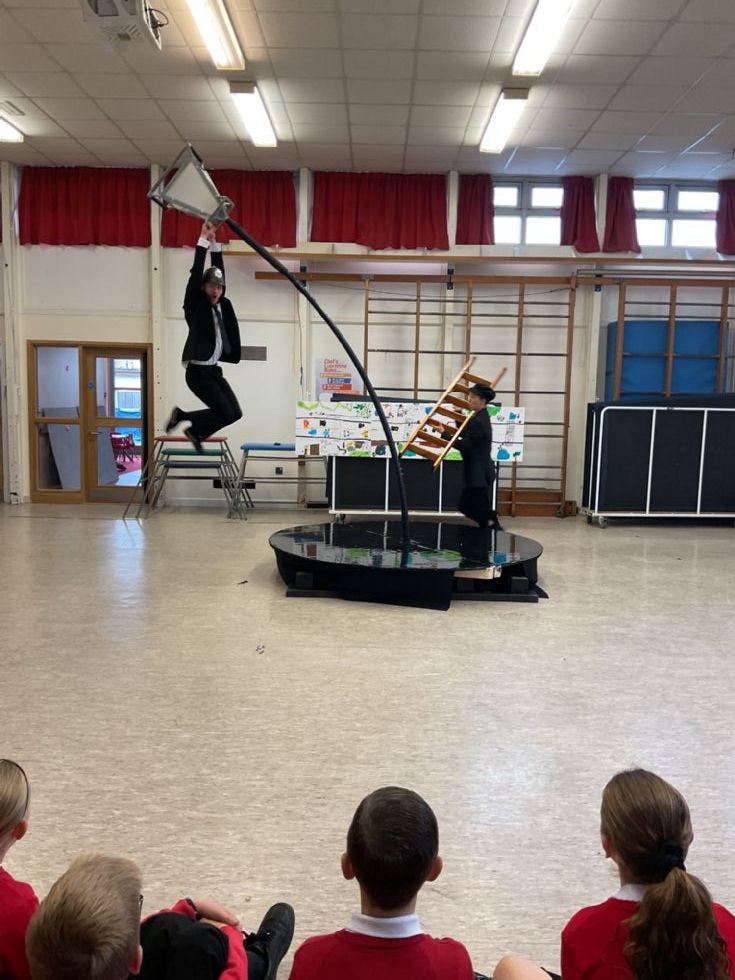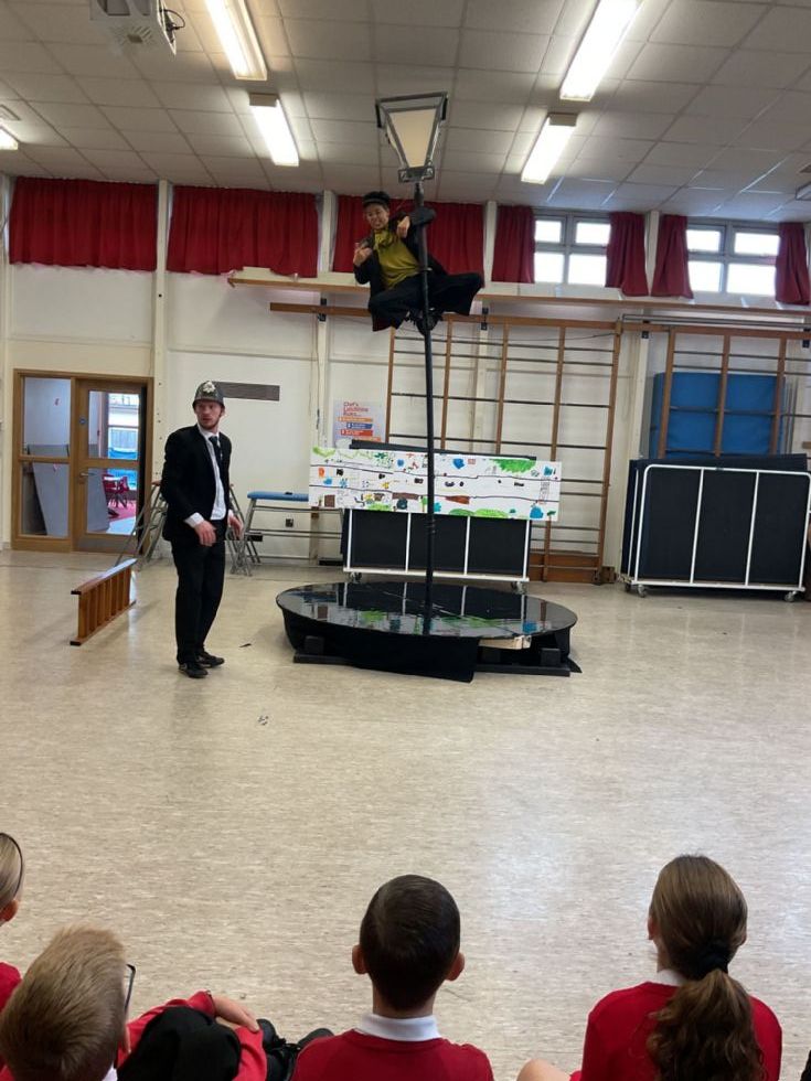 Finally, we took part in a theatre workshop with the Arts Council which ended with the show that we had written being performed by professional actors with our own backdrops which was really exciting!